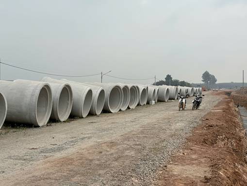 Cống ống thoát nước được tập kết phục vụ thi công hạ tầng kỹ thuật
