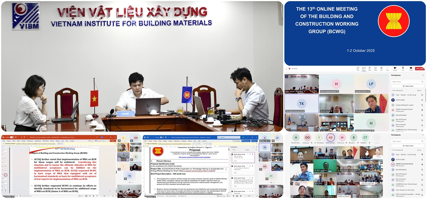 Trong hai ngày diễn ra Hội nghị, các đại biểu đã được lắng nghe báo cáo tóm tắt từ Ban thư ký ASEAN về các kết quả liên quan đến BCWG trong cuộc họp lần thứ 63 của Ủy ban Tư vấn về Tiêu chuẩn và Chất lượng ASEAN (ACCSQ). Sau đó, các đại biểu đã tập trung thảo luận về Kế hoạch triển khai công tác BCWG từ 2026-2030; xác định các tiêu chuẩn thường được sử dụng trong công trình xây dựng liên quan đến thành phố thông minh; trao đổi thông tin về quy định kỹ thuật hoặc tiêu chuẩn bắt buộc về vật liệu xây dựng (VLXD) và công trình của các Quốc gia thành viên; cập nhật tình hình các nước nộp thông báo/phê chuẩn MRA lĩnh vực VLXD; thảo luận về kết quả nghiên cứu khả thi trong việc thỏa thuận thừa nhận lẫn nhau và kế hoạch cập nhật các tiêu chuẩn về phương pháp thử của các nước liên quan đến MRA BCM, đặc biệt là các tiêu chuẩn liên quan tới đô thị thông minh, toà nhà phát thải ròng bằng 0, bê tông, ống nhựa, vật liệu cách nhiệt.