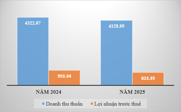 Trước sự biến động, năm 2025, Công ty ghi nhận doanh thu thuần 4.128,89 tỉ đồng, lợi nhuận trước thuế 823,35 tỉ đồng, tương ứng 87,50% và 85,37% so với kế hoạch đề ra.